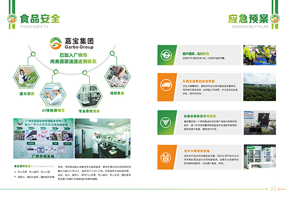 嘉寶食品集團(tuán)有限公司,注冊(cè)資金 5000 萬(wàn),始創(chuàng)于 2008 年,旗下有廣東嘉寶食品供應(yīng)鏈有限公司、惠州市嘉寶供應(yīng)鏈管理有限公司、浙江豐勝農(nóng)產(chǎn)品有限公司,嘉寶花都分公司、天河分公司。歷經(jīng)十余年風(fēng)雨洗禮,不斷發(fā)展創(chuàng)新,在餐飲管理、農(nóng)副產(chǎn)品配送領(lǐng)域積累了寶貴的經(jīng)驗(yàn),擁有完善的生產(chǎn)、加工、運(yùn)輸配送服務(wù)體系,配送專(zhuān)用占地 10000 多平方米,各設(shè)有加工車(chē)間、果蔬類(lèi)初加工區(qū)、肉類(lèi)初加工區(qū)、庫(kù)房、冷庫(kù)、運(yùn)輸車(chē)及各種規(guī)格的周轉(zhuǎn)箱等完善的生產(chǎn)、加工、儲(chǔ)存、運(yùn)輸設(shè)備,配備有食品安全檢測(cè)區(qū),能夠?qū)κ卟恕⒐瞎仁称愤M(jìn)行安全檢測(cè),強(qiáng)有力的保證了蔬菜的安全、新鮮、營(yíng)養(yǎng)。